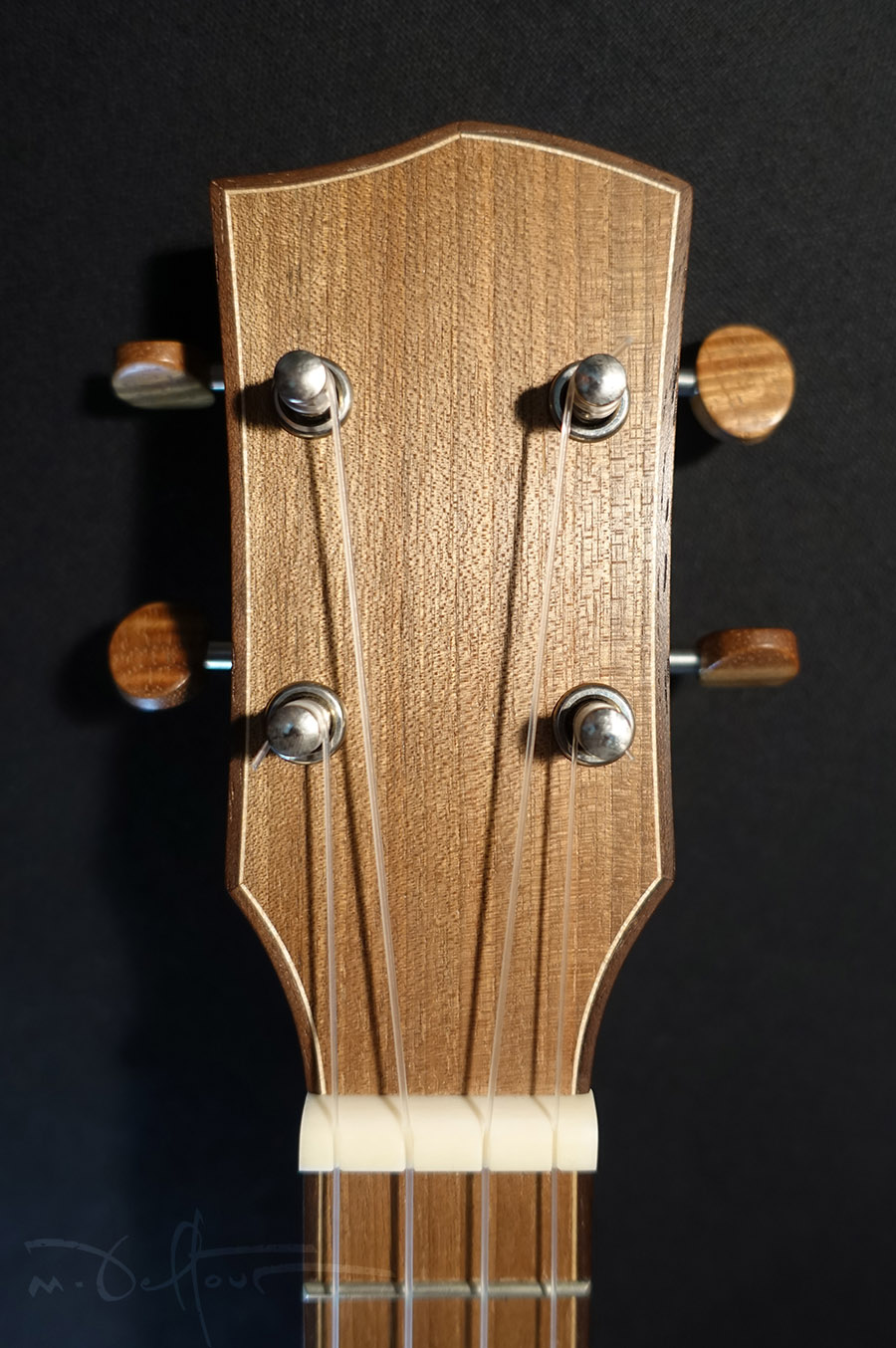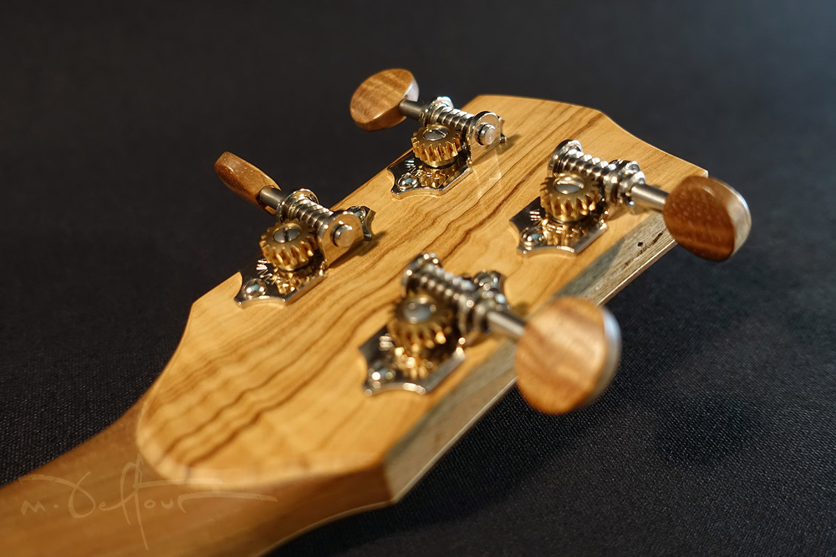 Tuners: Nikel Waverly ukulele tuners with Koa buttons