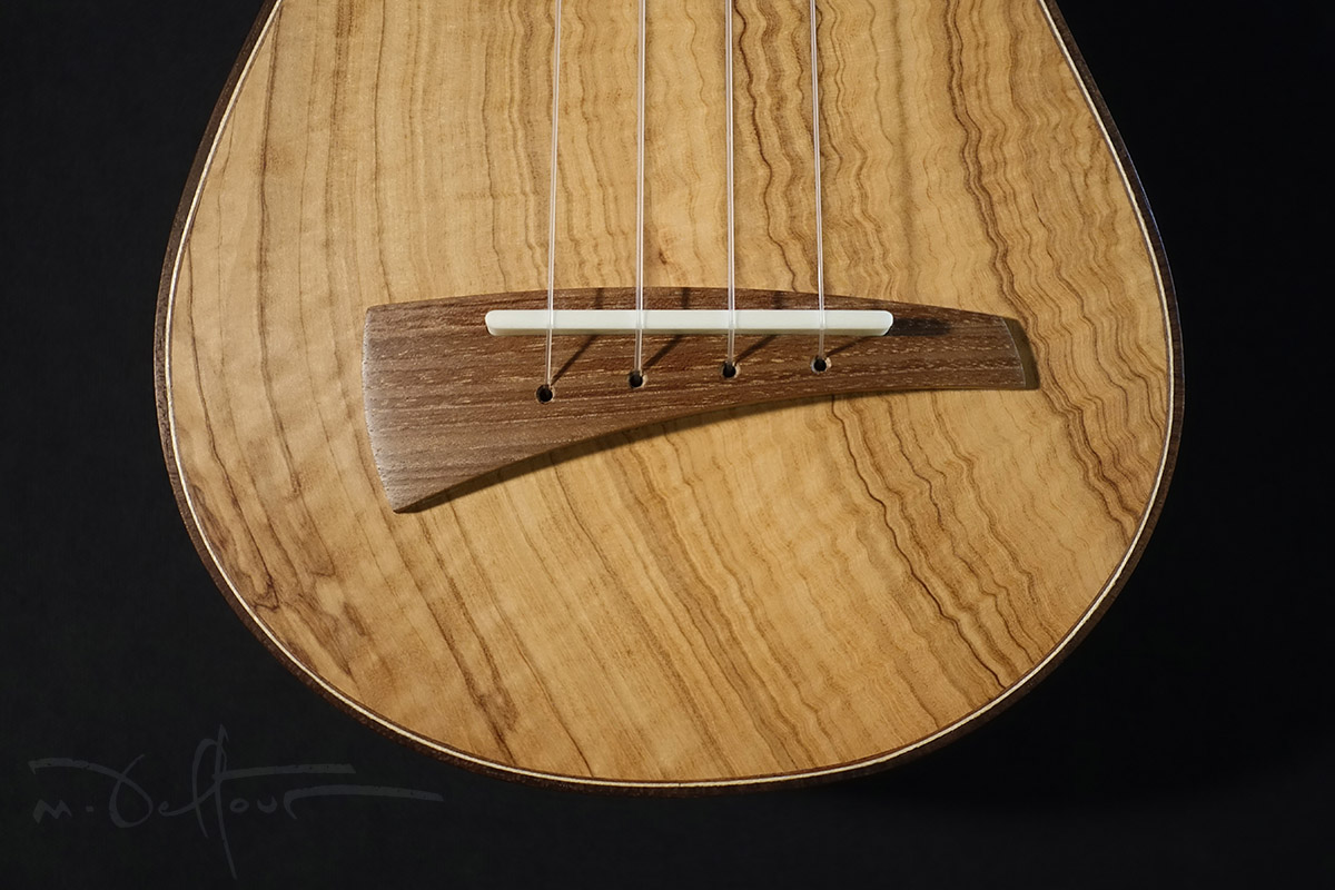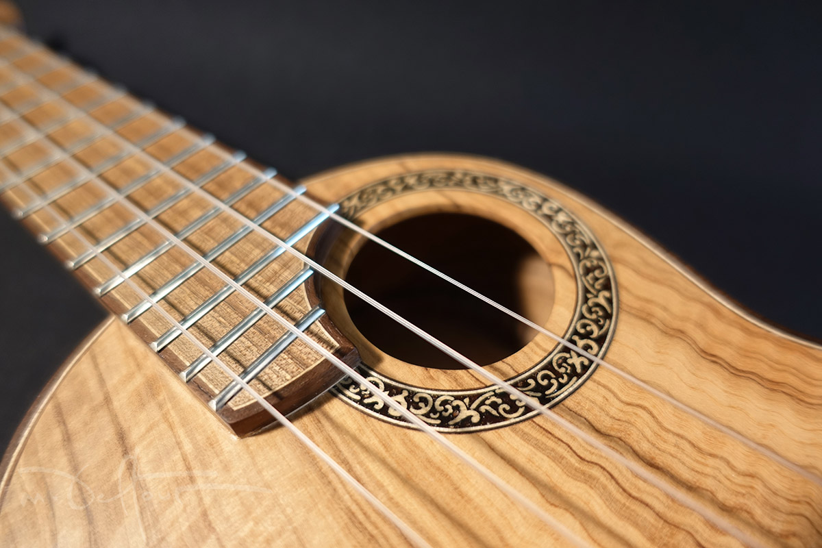 "chimy" tone with the full olive wood construction and dense wood of the neck.