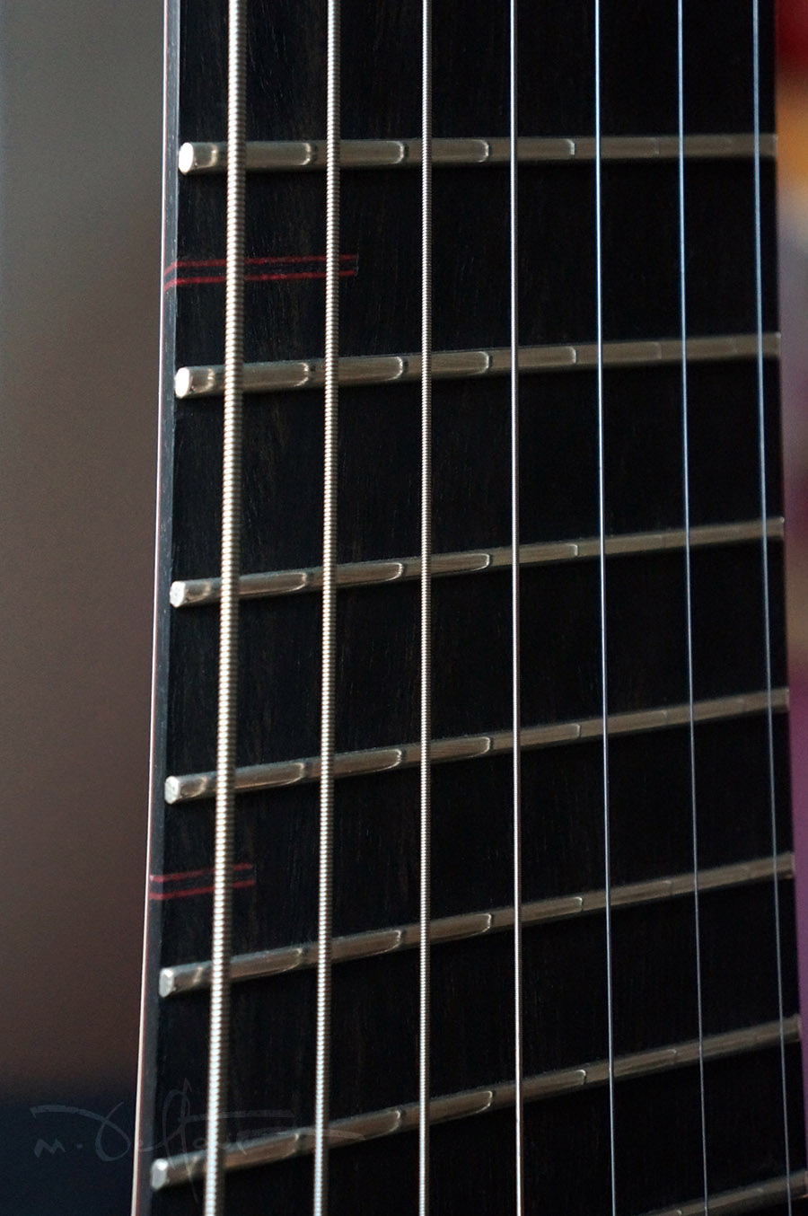 My most challenging instrument so far. This is a 7 strings guitar so far from